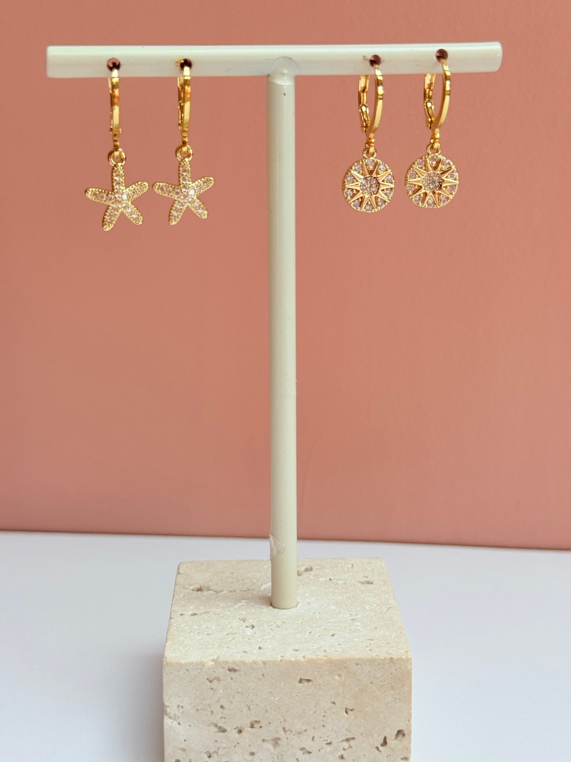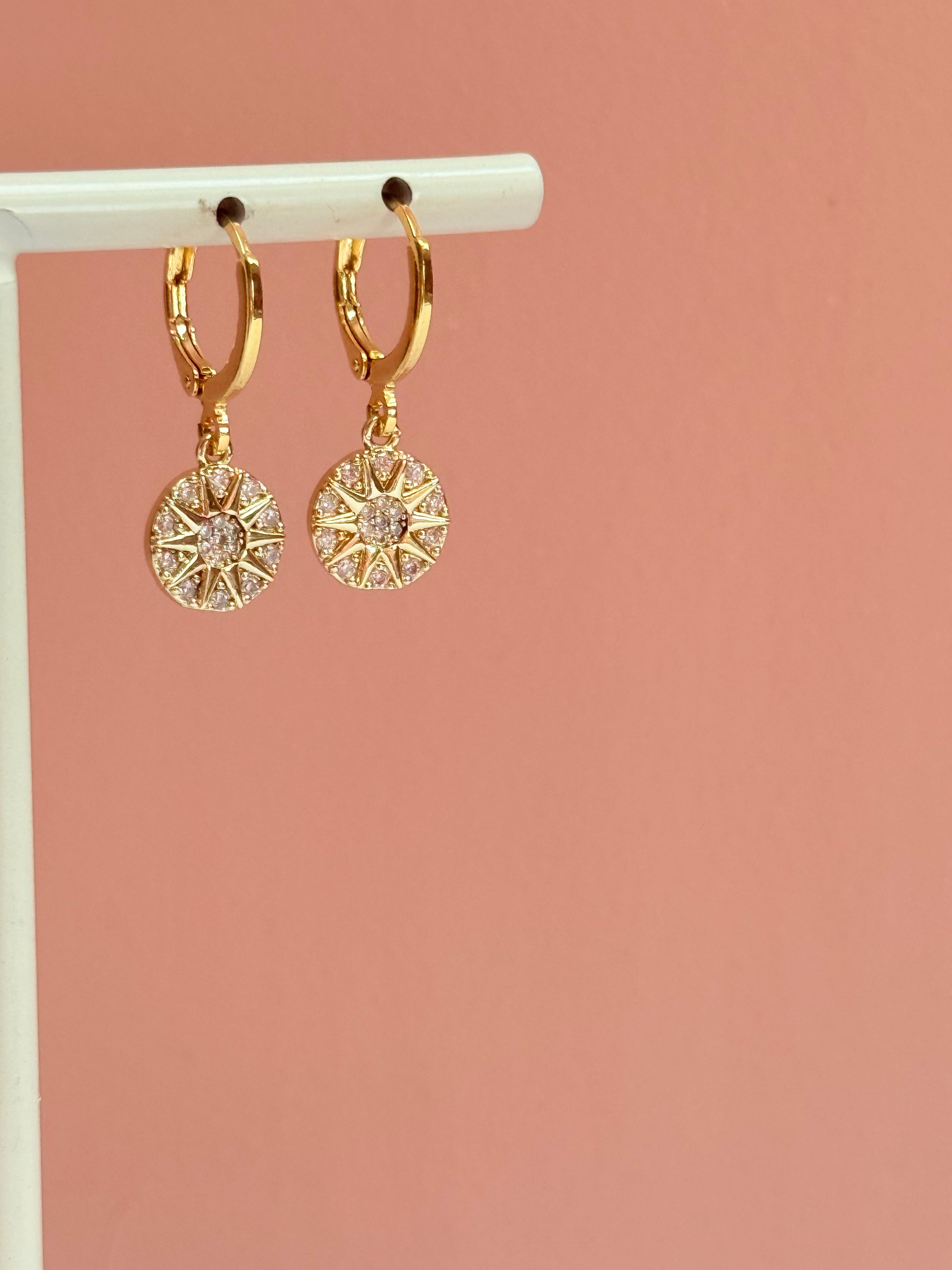 These beauties are made with a 24k gold plated little huggie earring hoop measuring 14mm. They have a gold sparkle star charm attached to each earring which are very simple but perfect if you want a little bling. They are lead and nickel free.