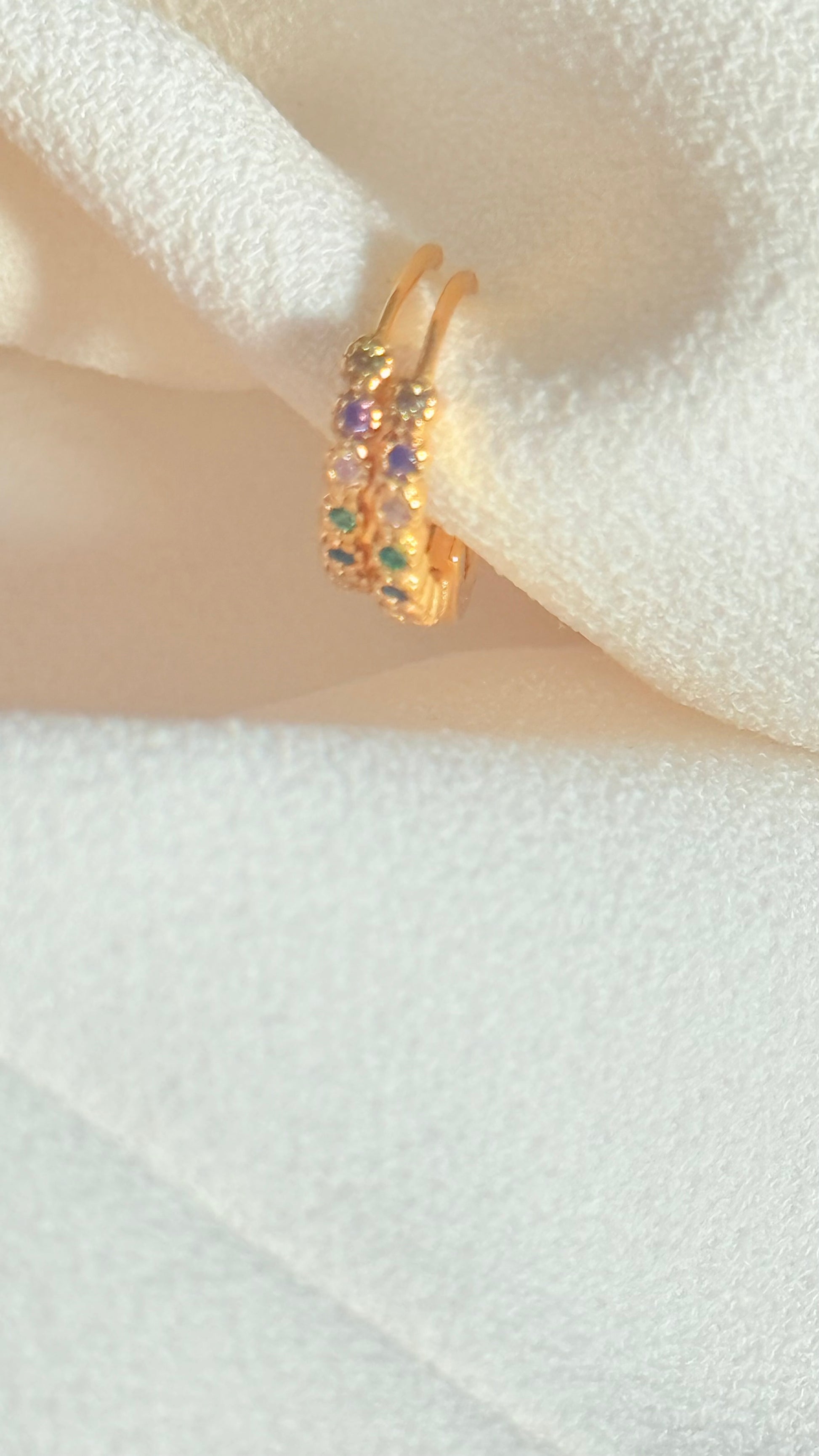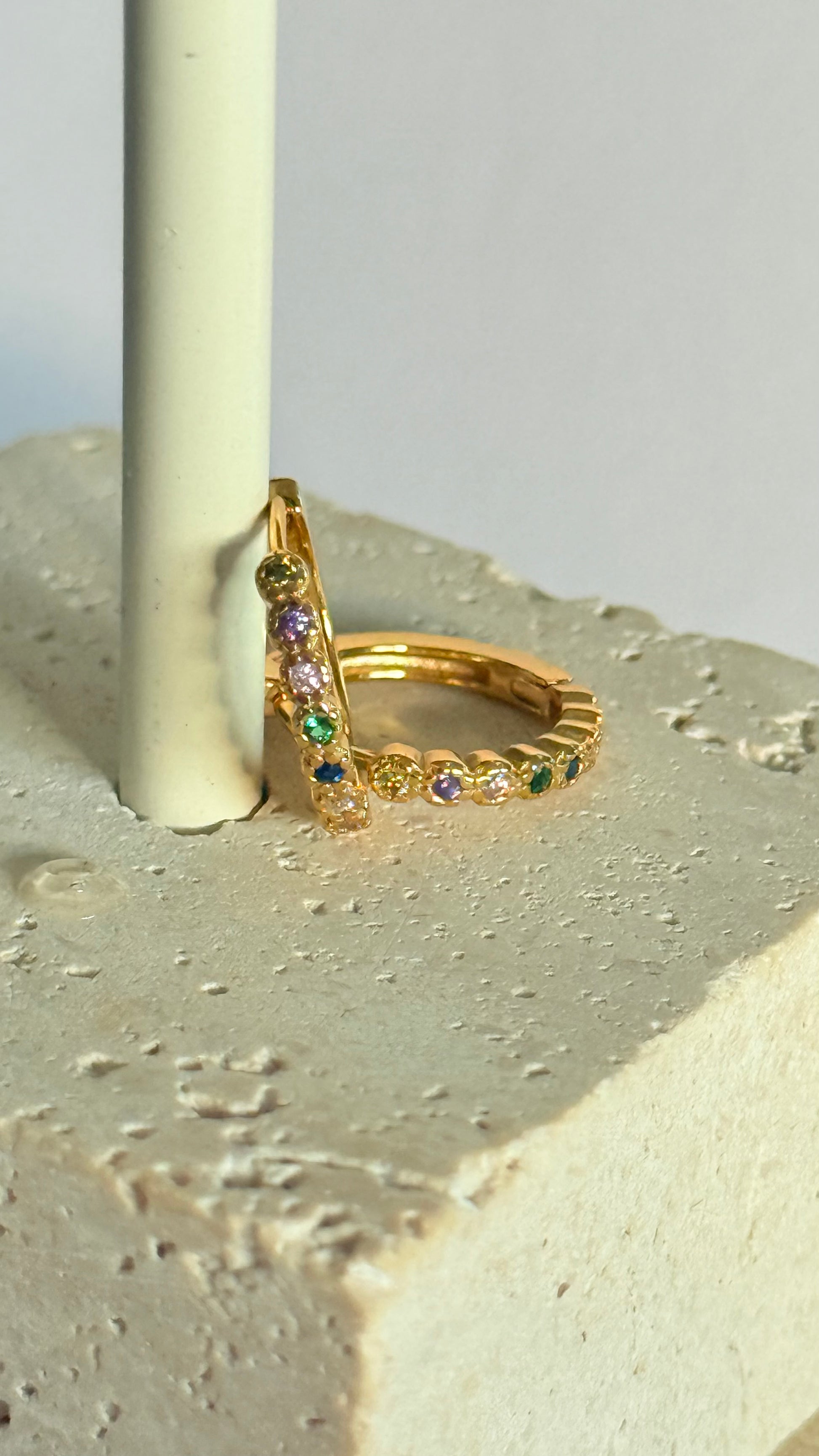 These curated rainbow zirconia huggie hoop earrings are the perfect earring if you want something small but eye catching. The gold plated sterling silver hoop along with the beautiful colourful stones really have such a fashionable and chic look. The earrings are made with gold plated sterling silver and measure 12mm xx